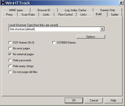 Note that if you gather files from HTTrack on your desktop for later Uploading you will need to make adjustments to your HTTrack options. The option No External Pages will need to be ticked so that the post processing script will function and will deliver the PANDORA referring page for external web links.